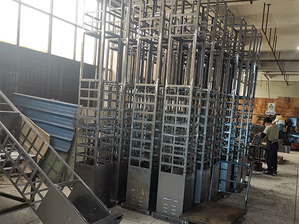 3. 制作機(jī)柜框架:使用切割設(shè)備將冷軋鋼板裁剪成合適的形狀,并將其焊接或螺接成框架。